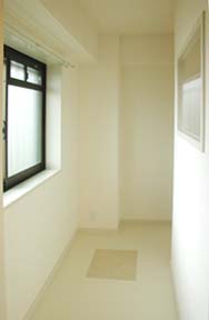 玄関横のシュー&クロゼットスペース。廊下側の窓からの採光を利用して、